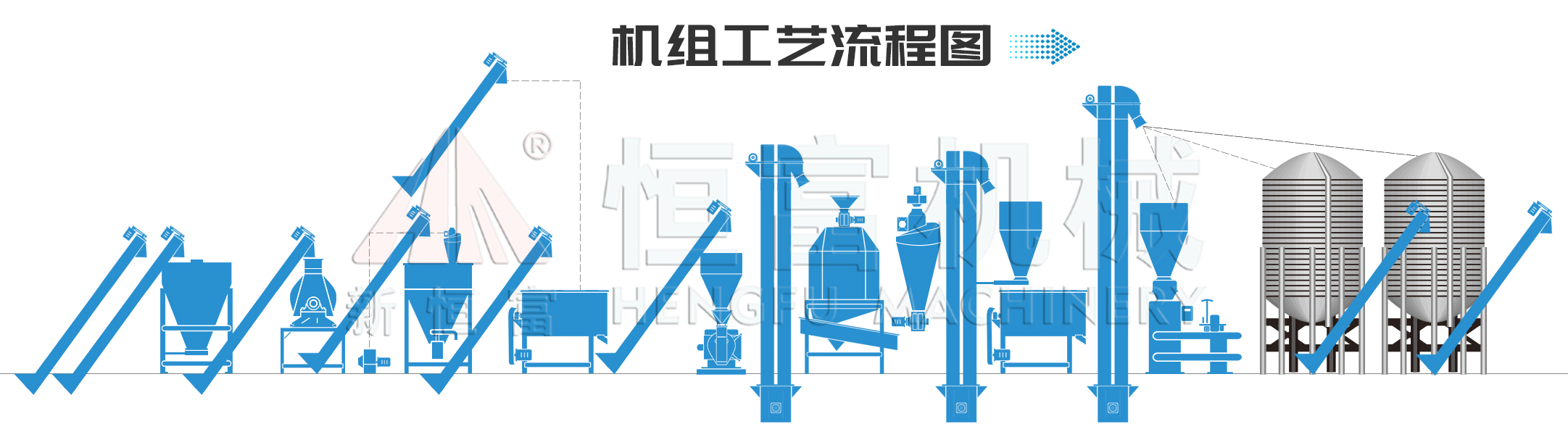 根據需求此方(fāng)案配(pèi)備的設備有:水滴式飼料粉碎機、臥式飼料混(hún)合(hé)機、環模飼料顆粒機、逆流式飼料冷卻器及掛篩、自動定量飼料包裝秤(chèng)、提升輸送設備(bèi)、噴塗係統、電控係統、兩個20噸料塔、附(fù)屬設備等。