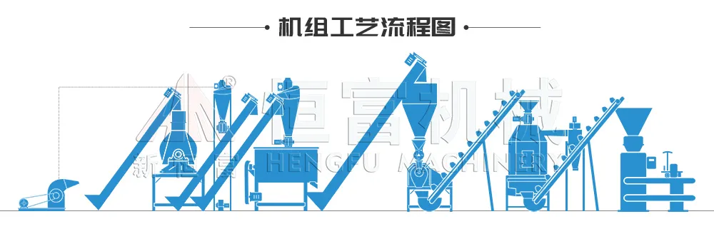 主(zhǔ)要設備有:多功能飼料粉(fěn)碎機、水滴式飼料粉碎機、單軸雙螺旋(xuán)飼料混合機、環(huán)模飼料顆粒機、逆流式飼料冷卻器、鍘草機、打包(bāo)機、PLC控製(zhì)係統等(děng)。