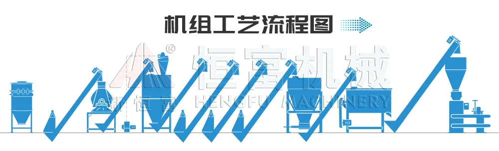 本條生產線包含(hán)設備(bèi)有:酒槽投(tóu)料鬥、烘幹機(客戶自有)、圓筒原料初清篩、2台水滴型飼(sì)料粉(fěn)碎機、2台脈衝飼料除塵器、2個30m³鍍鋅料塔、2個2m³待粉碎倉、包(bāo)裝碼垛設備、提升輸送(sòng)設備以及控製係統等。