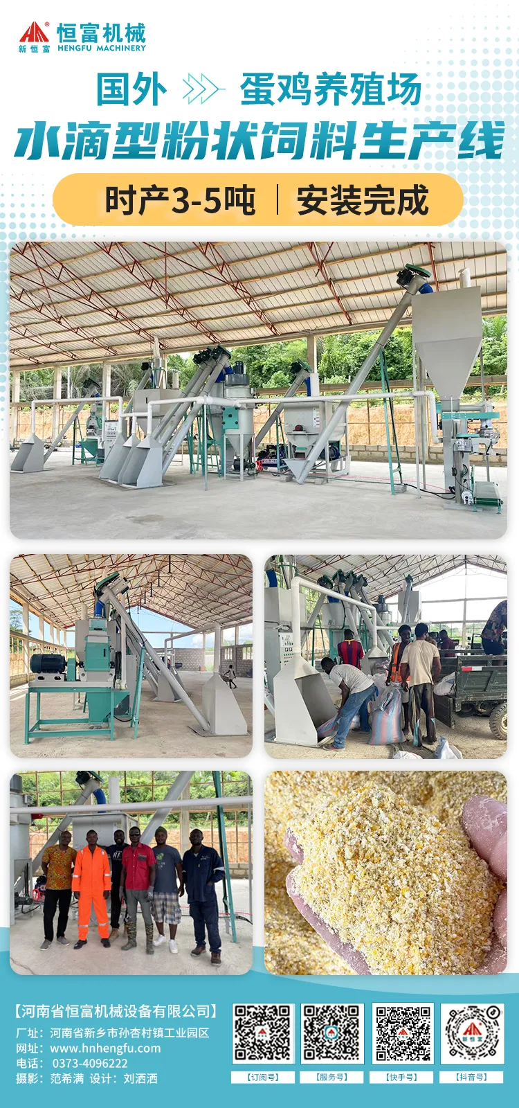 國外時產3-5噸粉(fěn)狀飼(sì)料加工機組安裝完成。