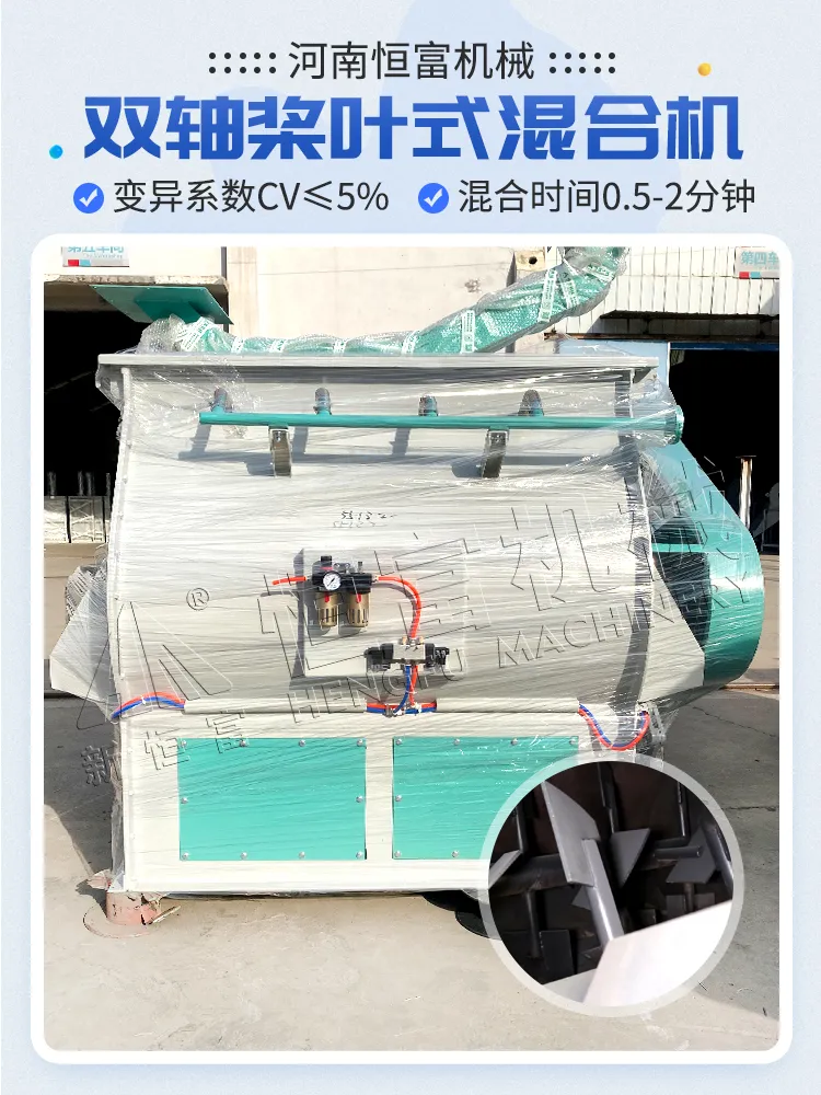 該機(jī)組主(zhǔ)要設備(bèi)有:脈衝飼料除塵器、雙軸槳葉飼料混合機、鬥式提升機、旋轉分配器、配料(liào)秤、飼料自動定量打包機、PLC控製係統(tǒng)等。