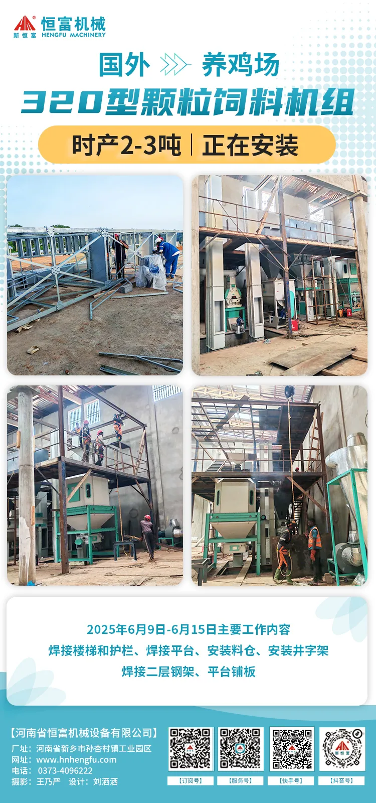 河南恒富(fù)機械-成套飼料加工設備安裝進度【2025-6-10】