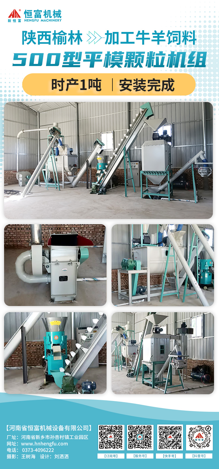 陝西(xī) 500 型平模顆粒(lì)飼料機組,用於加工牛羊草(cǎo)粉顆粒飼料部分自用(yòng)、部分外銷已安裝完成。