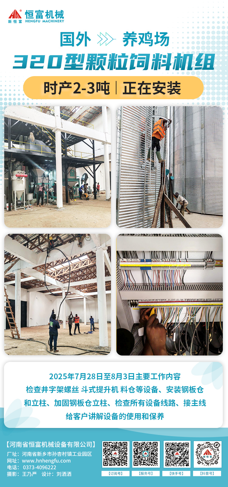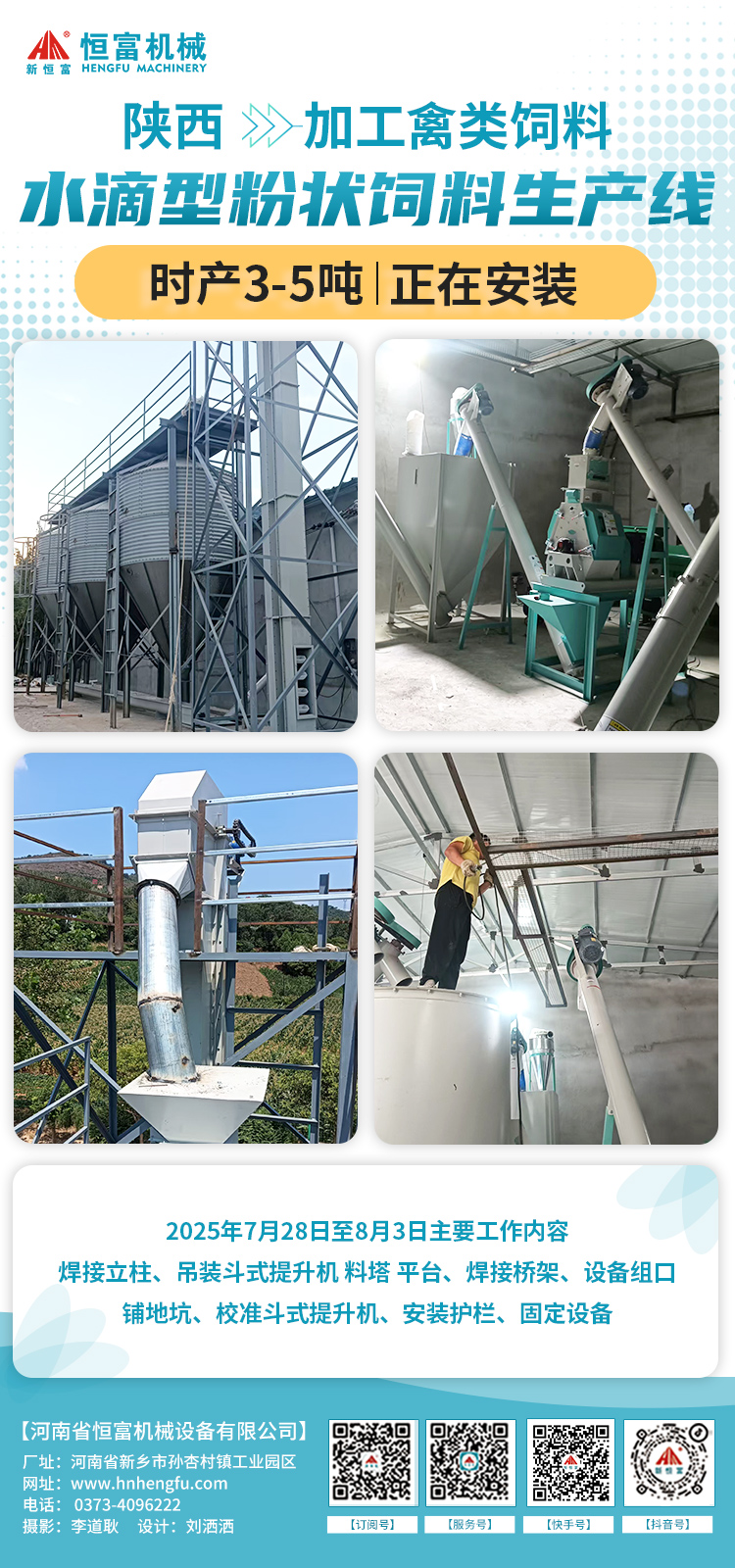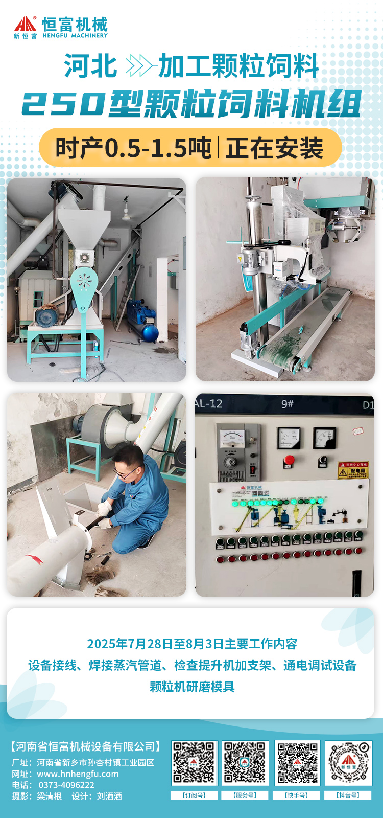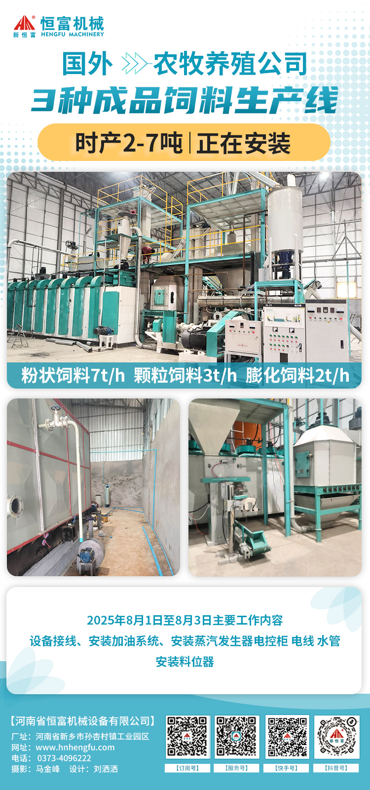 河南恒富機械-成套(tào)飼料加工設備(bèi)安裝(zhuāng)進度【2025-7-1】