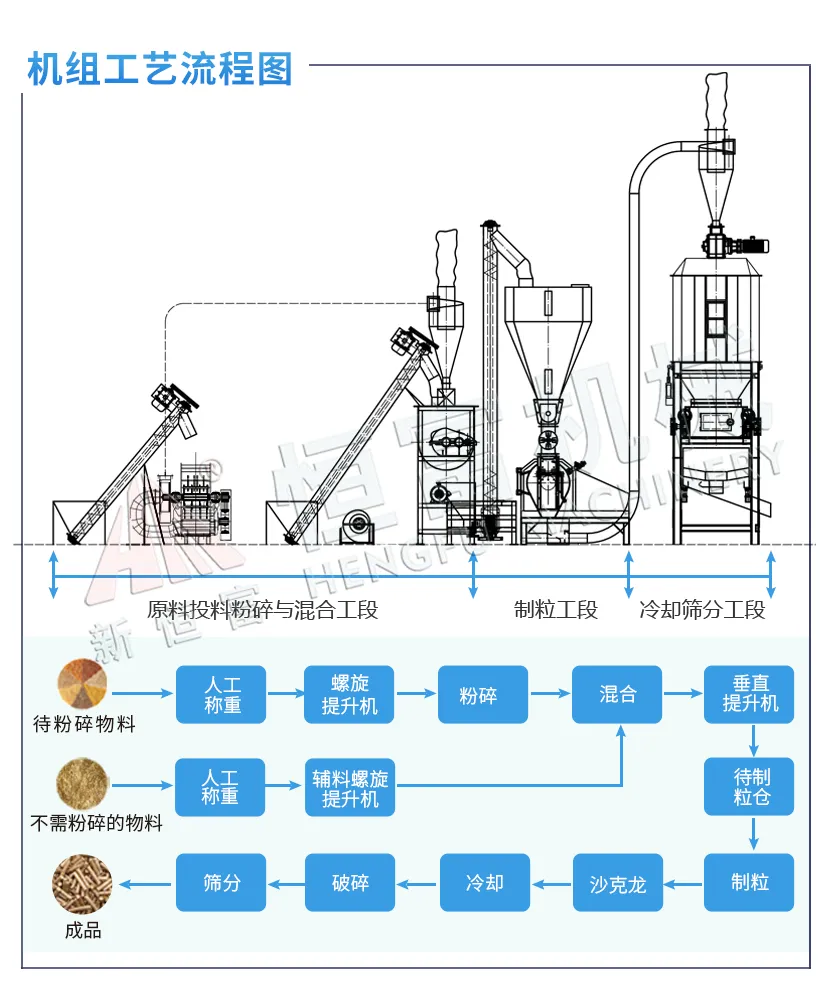 主要設備有:多功(gōng)能飼料粉碎機、單軸雙螺旋飼料混合機、環模飼料顆粒機、逆流式飼料冷卻器、輥式飼料破碎機、PLC控製係統、油液(yè)添加(jiā)係統。