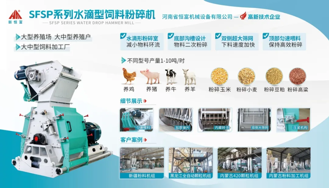 作為國內飼料機械領域的(de)創新引(yǐn)領者,恒富機械將隆重展出兩款匠心(xīn)之作(zuò),有(yǒu)水滴式飼料粉碎機以及環(huán)模飼料顆粒(lì)機。
