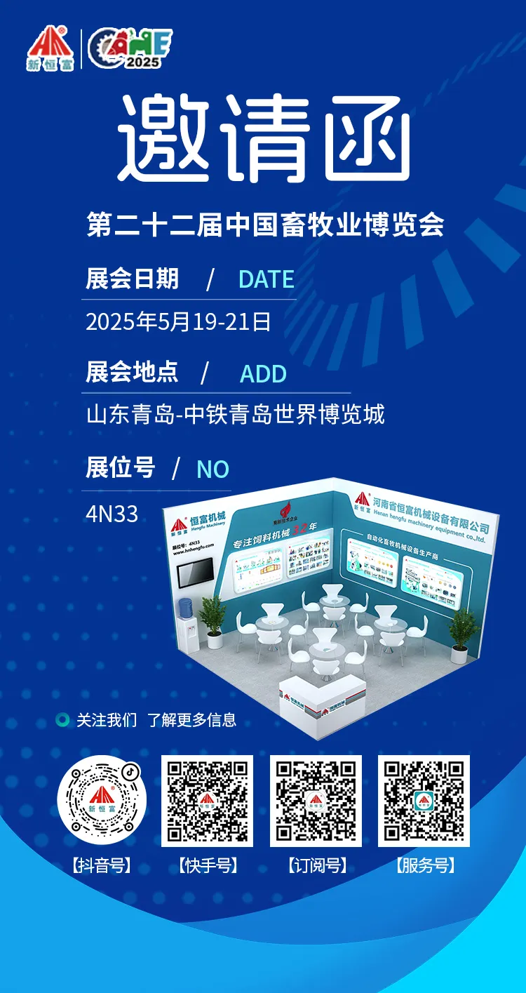 邀請(qǐng)函 | 第二十二屆(2025)中國畜牧業博覽會即(jí)將開幕!邀請函(hán) | 5月(yuè)19日-21日,恒(héng)富機械(xiè)邀您(nín)相聚第二十(shí)二屆(2025)中國畜牧業博(bó)覽會